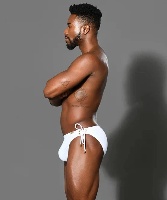 Meet our skimpy new Side Lace Bikini swimwear. It's super cute, it's sexy, and it's so you. Thanks to the limited edition lace up design with stunning contrast details and slimming, form-fitting cut, this will quickly become your favorite swimwear. Plus, with this bikini, we’ve virtually eliminated sticking, squashing, re-adjusting, sweating, and chafing. When you pull them on, your package will fall in naturally to our amazing signature flat pouch with a fun snuggle fit. You’ll have a truly enjoyable and unique wearing experience.