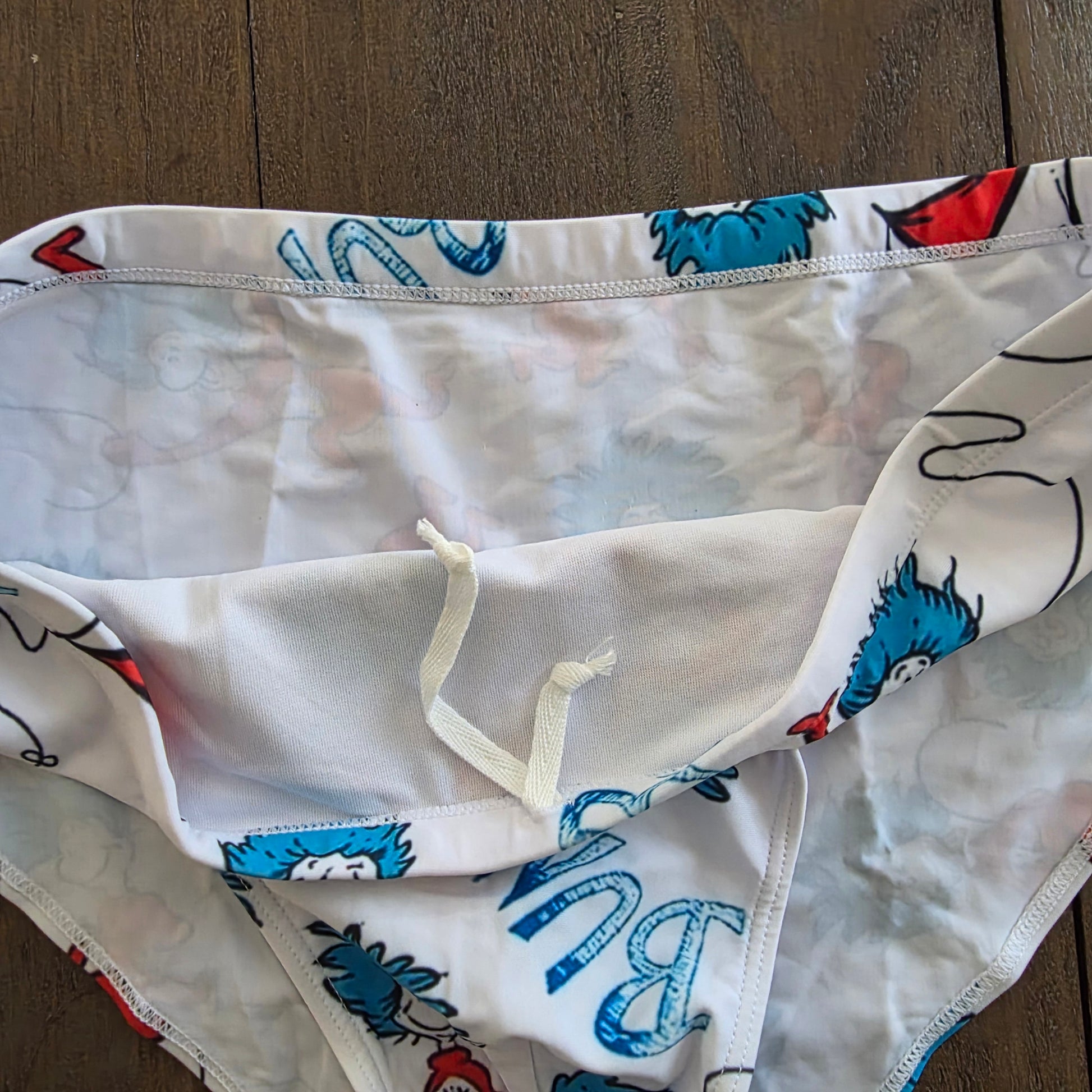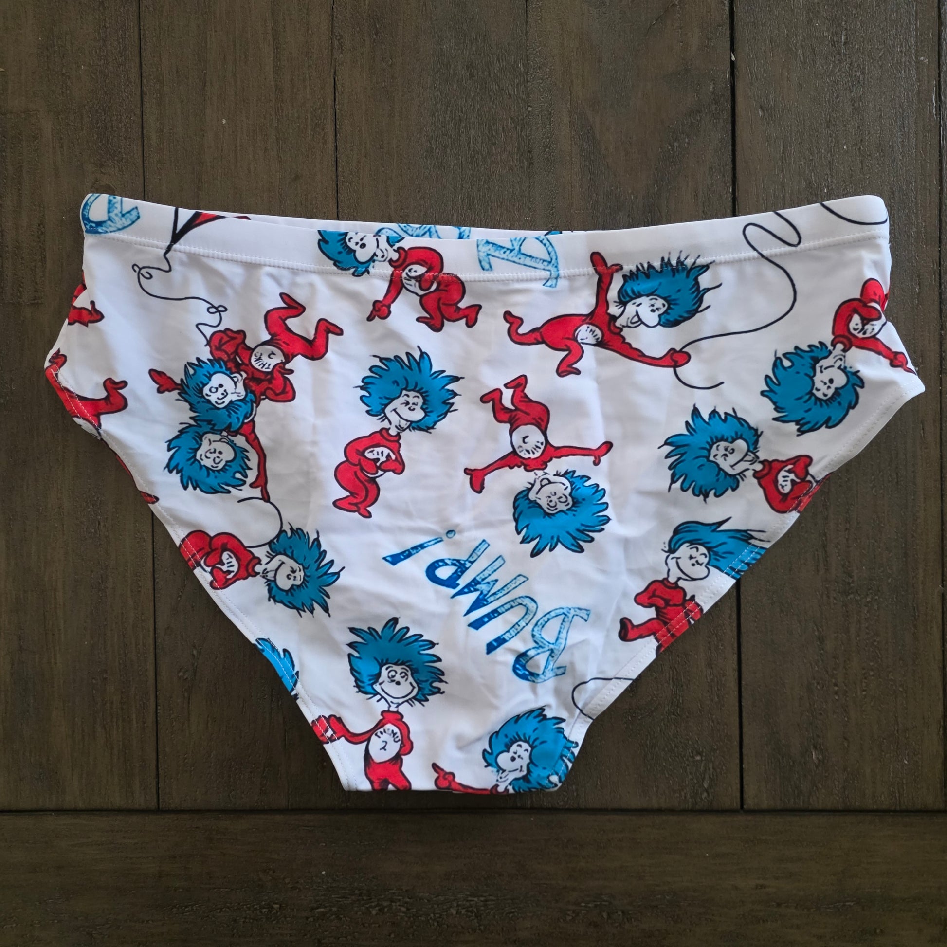 Men's Swim Bikini Briefs Cute Dr. Seuss Thing 1 and Thing 2 Print White XL